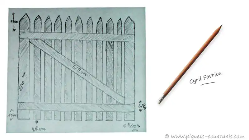 Vous pouvez aussi créer votre propre portillon en prenant un peu plus de ganivelle et en mettant des bois pour faire un cadre. Le croquis ci-dessous vous donne les indications utiles à votre construction.